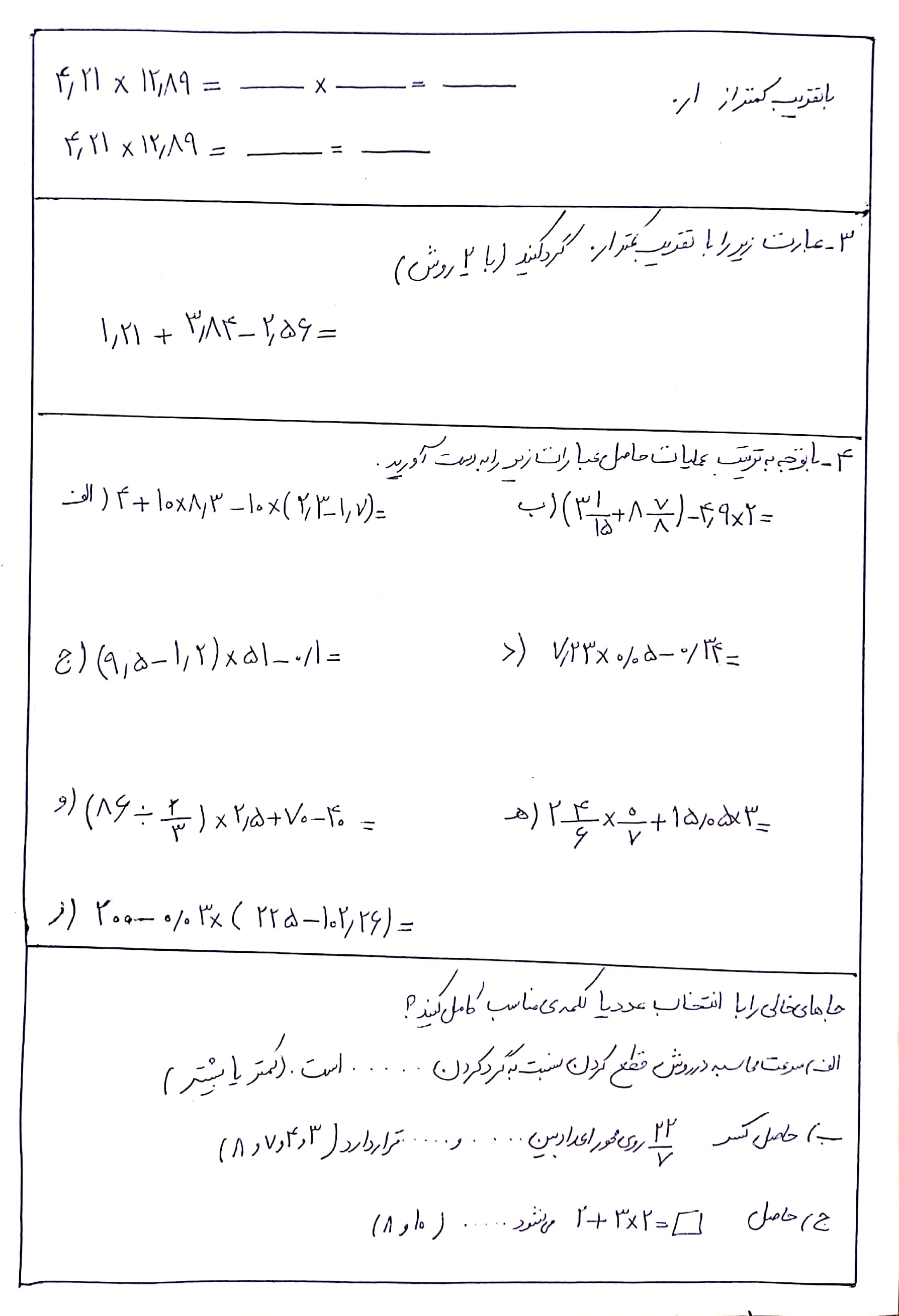 ریاضی ششم حل مشق محاسبات با کسر ریاضی ششم