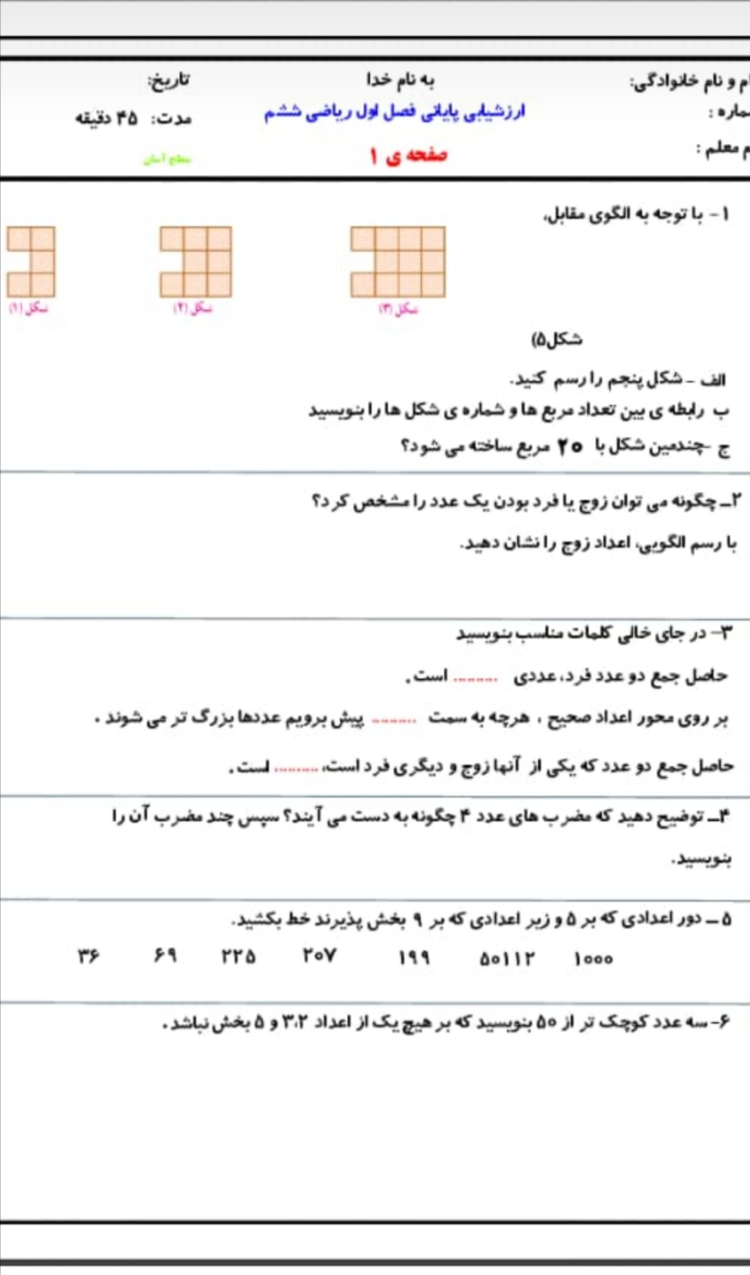 ریاضی ششم قسمت اول صفحه 45و46